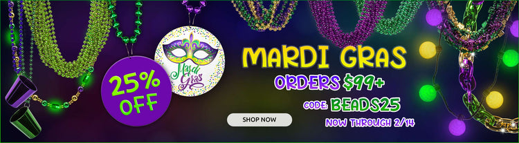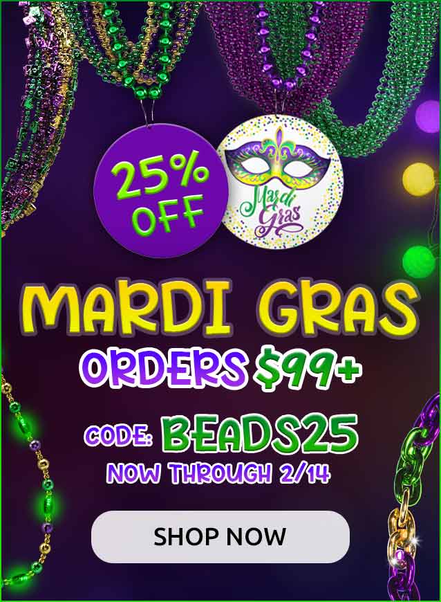 Get ready to glow in traditional Fat Tuesday style with this eye-catching LED Mardi Gras 46" Ball Beads Necklace. Featuring 15 jumbo 30mm beads in alternating green, gold, and purple, this glow-in-the-dark necklace delivers serious festive flair. The best part? 8 of those gorgeous...