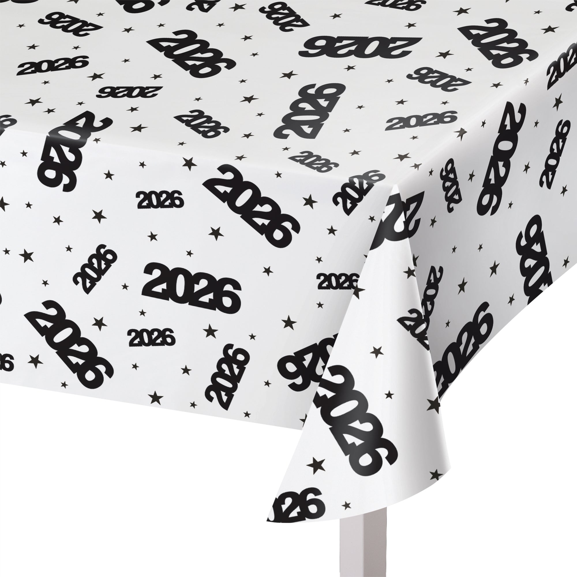Ring in 2026 with style! This versatile 54" x 108" clear plastic table cover works double duty—layer it over any solid-colored tablecloth for a festive New Year's look, or use it to commemorate the Class of 2026 graduation season. The transparent design allows your base color to shine through while the bold 2026 graphics take center stage. Perfect for parties, celebrations, and milestone moments alike! Sold by the individual table overlay. Please order in increments of 1 table cover. SKU: PAP147206EA