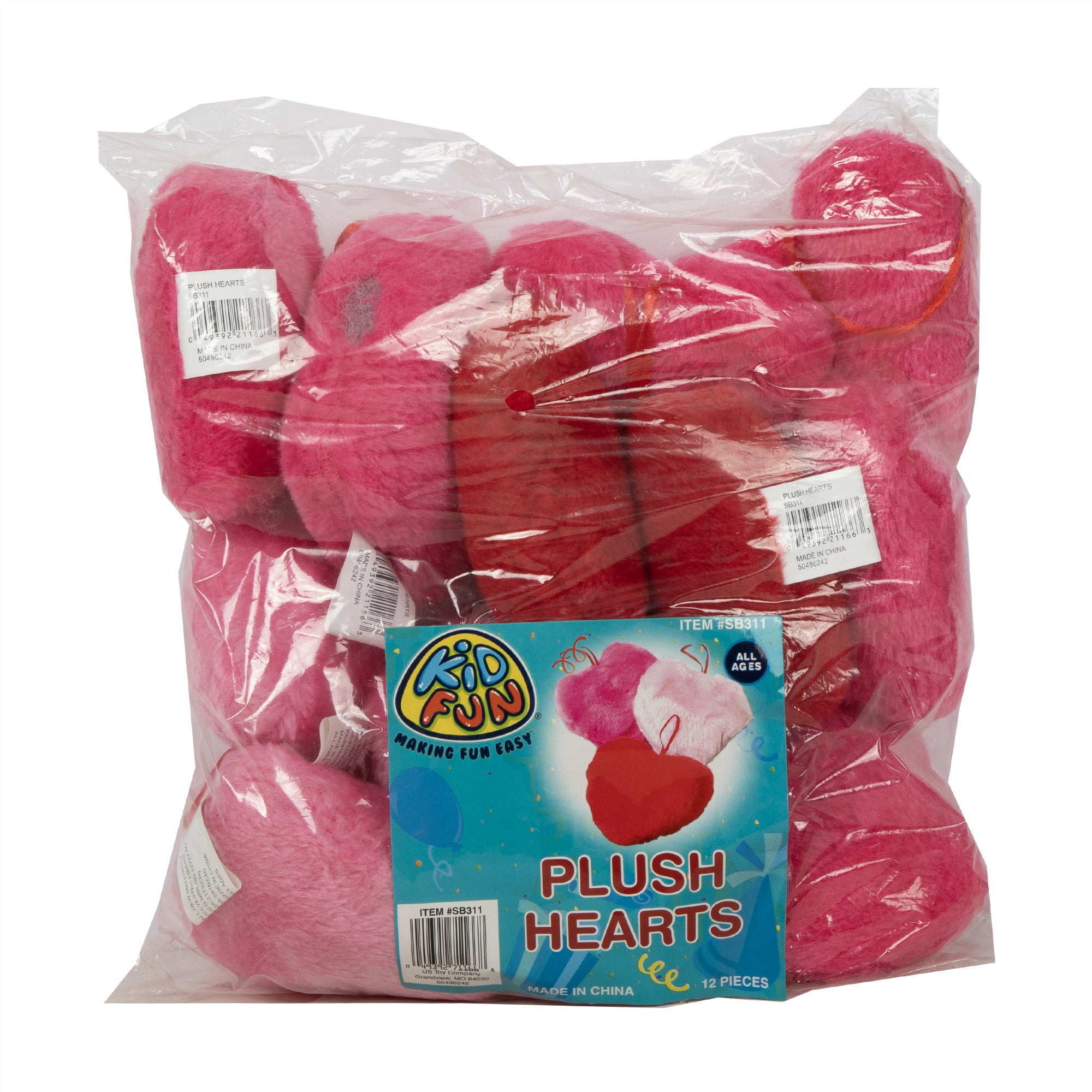 Spread the love with these adorable 4" plush hearts! Perfect for Valentine's Day and Sweetest Day celebrations, these soft, cuddly companions make fantastic party favors that guests will adore. With 12 assorted colors in each polybag, you'll have plenty to share the joy around. Hang them as festive decorations or hand them out as tokens of affection—these charming hearts are sure to bring smiles to everyone's faces! Please order in increments of 1 pack. SKU: SB311 ♥ ♥ ♥