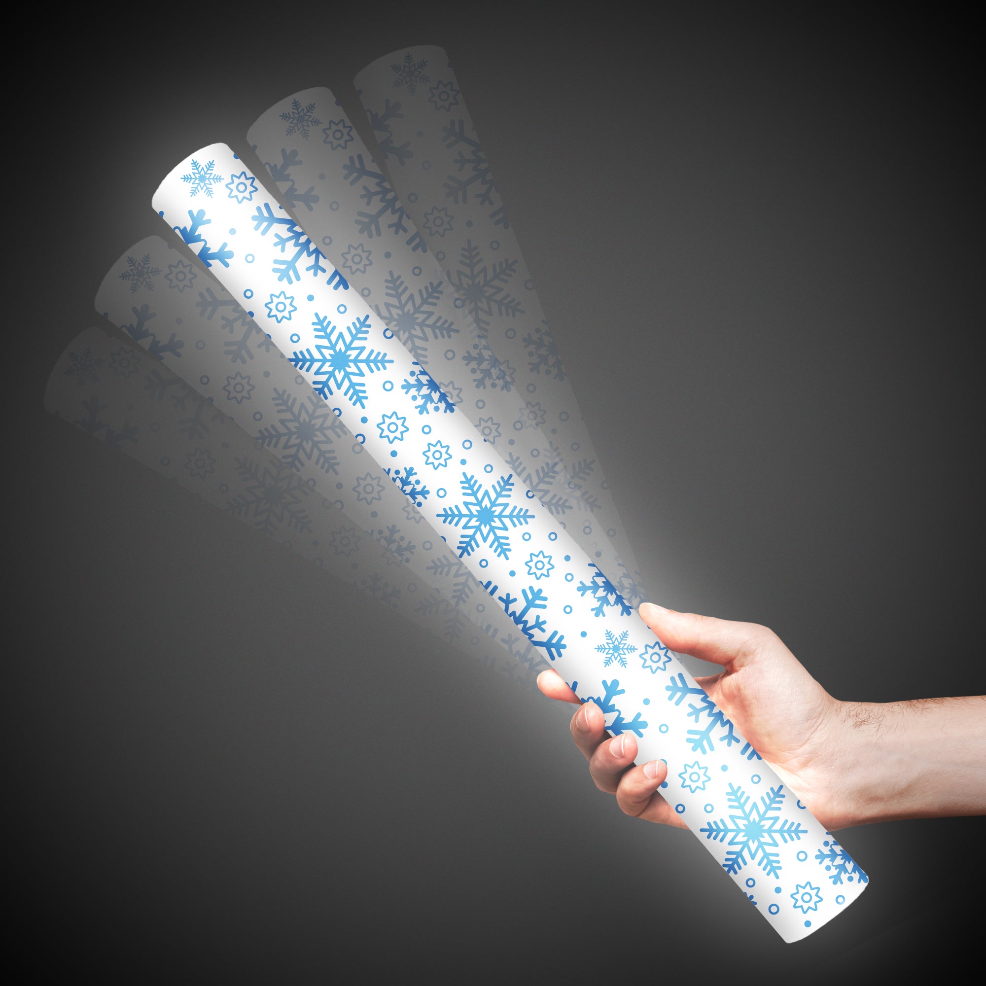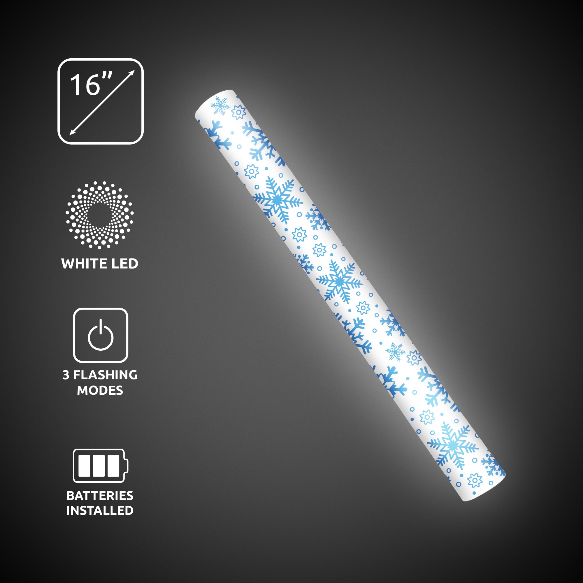 Our beautiful blue snowflake 16"L foam baton features a full-length sleeve covered in snowflakes and makes a beautiful addition to any Winter Wonderland event. These lumitons look wonderful day or night. At night, simply click the button to choose from 3 different white light settings: steady on, fast flash, and slow flash. Hand out our snowflake light-up foam sticks to the guests at the Winter Wonderland party. The world does not have to be frozen to enjoy our blue snowflake light-up baton at any party with a winter party theme. Perfect for Christmas, too! SKU: LIT114EA