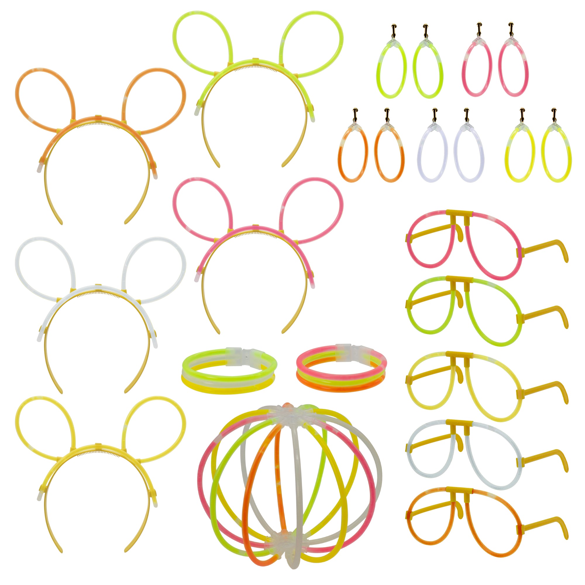 Start any party with our 100-piece 8" Glow Party Pack. Each glow bracelet measures 8 inches in length. Bend and Shake to experience the mesmerizing soft glow lights one time. Comfortable and skin safe. Ideal for party favors, promotions, concerts, music festivals, and any night events. Connectors are included but not pre-attached. Includes an assortment of colors. Sold 100 pieces of glow sticks bracelets and connectors per pack. Please order in increments of 1 pack.
