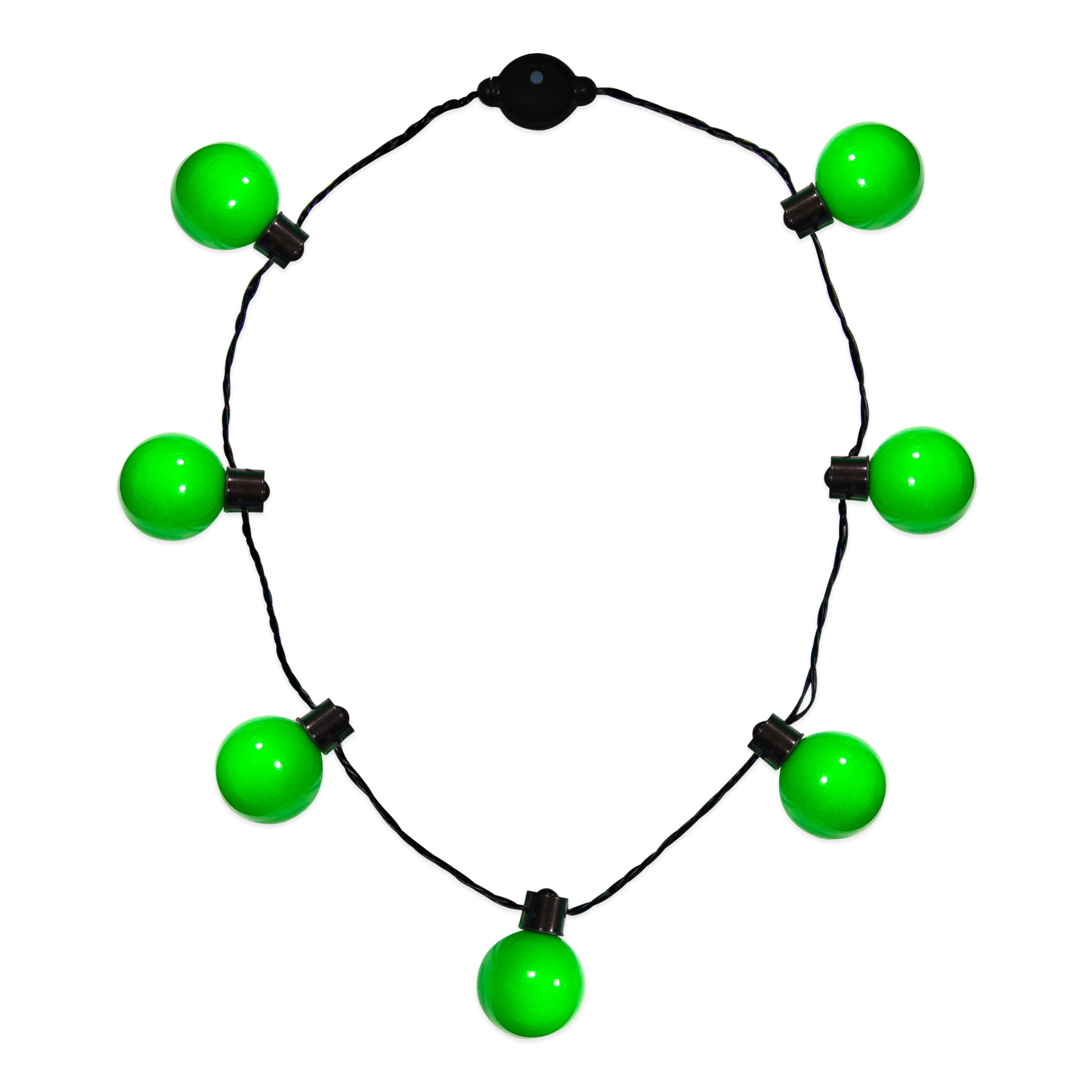Light up the night in vibrant green! This eye-catching necklace features seven glowing LED balls with six dynamic lighting modes—from gentle pulsing to rapid flashing and steady glow. Switch between effects with a single click to match your mood or event vibe. Whether you're celebrating St. Patrick's Day, attending a themed party, or just want to stand out, this necklace delivers all-day and all-night style. Comes with two CR2032 batteries already installed and ready to shine. US Patent Number: 10,064,461 SKU: LBN000EA