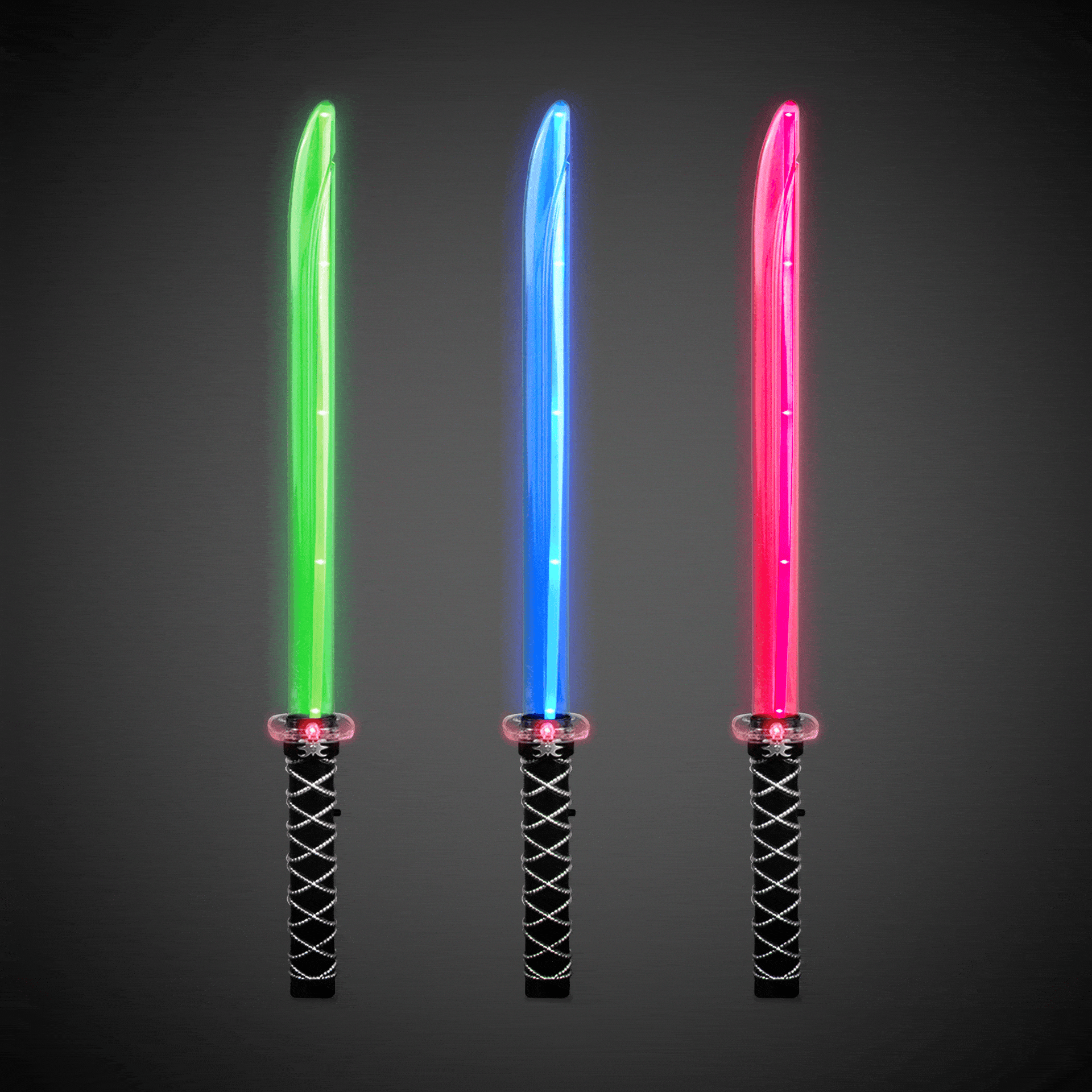 It is game night for the Ninja and our light-up LED Ninja Sword adds to the fun of the night. Each sword comes with batteries included and installed. Sword color may vary between green, blue, and pink. No choice of which color is received. Sold by the individual sword. Please order in increments of 1 sword. SKU: WEA1030EA