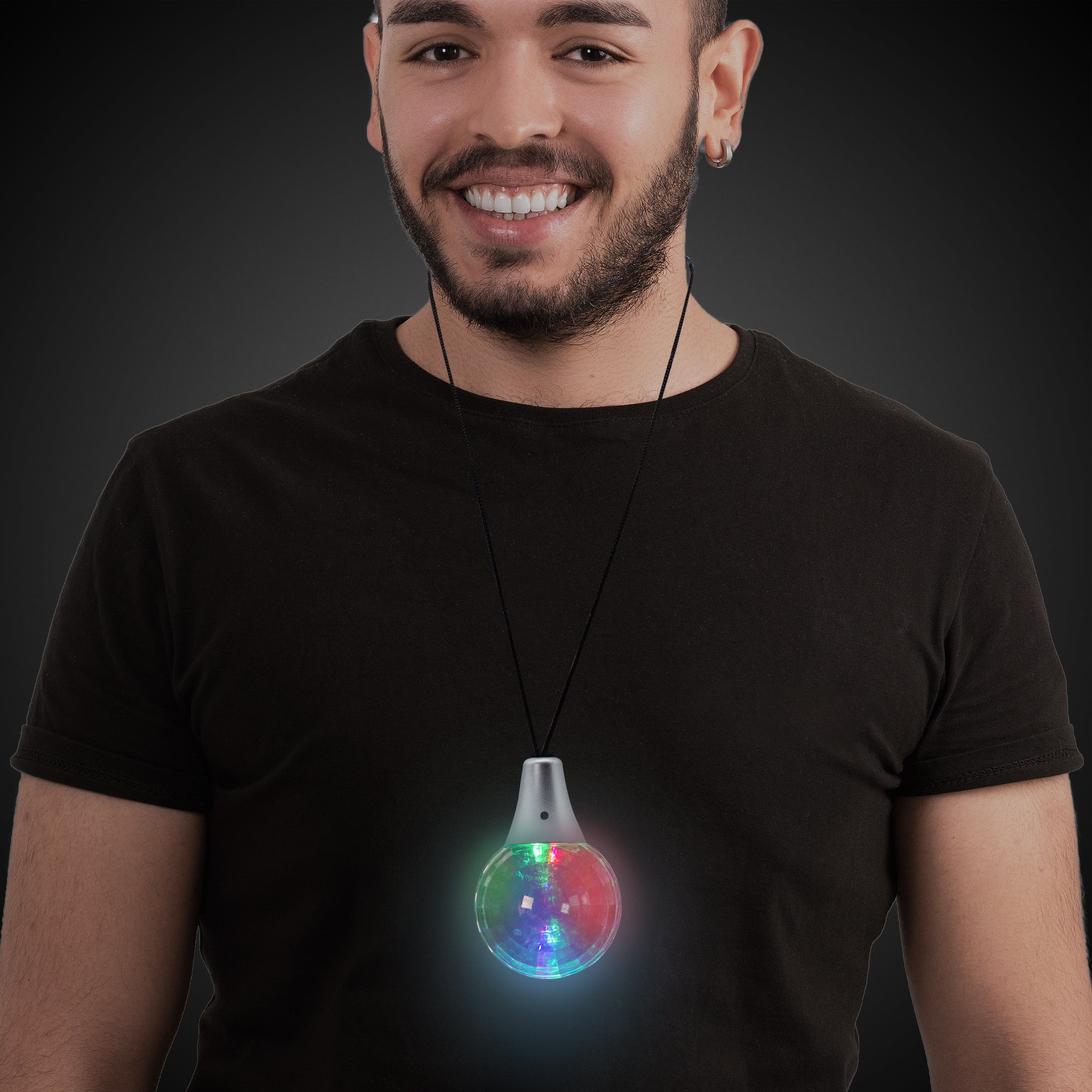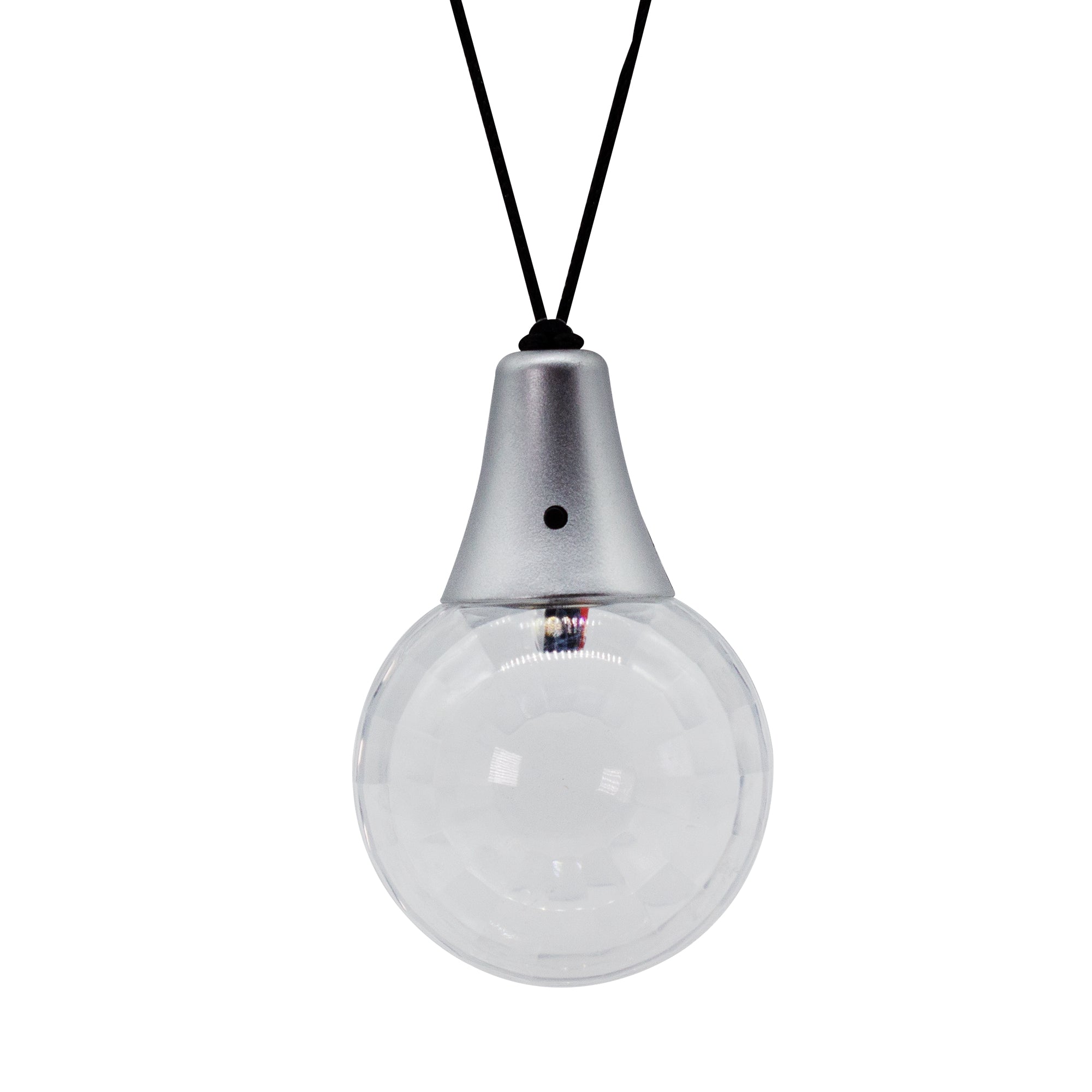 Bring and wear your own disco ball around your neck whenever you go! From New Years Eve to Disco theme parties you will love our LED Disco Ball Necklace. Each necklace features a crystal-like ball that emits Multicolor LED lights with 3 light modes: fast blinking, slow blinking, and single color blinking. Perfect for festivals, raves parties, discos, nightclubs, and after-night parties. Batteries are included and installed. Sold by the piece. Please order in increments of 1 piece.