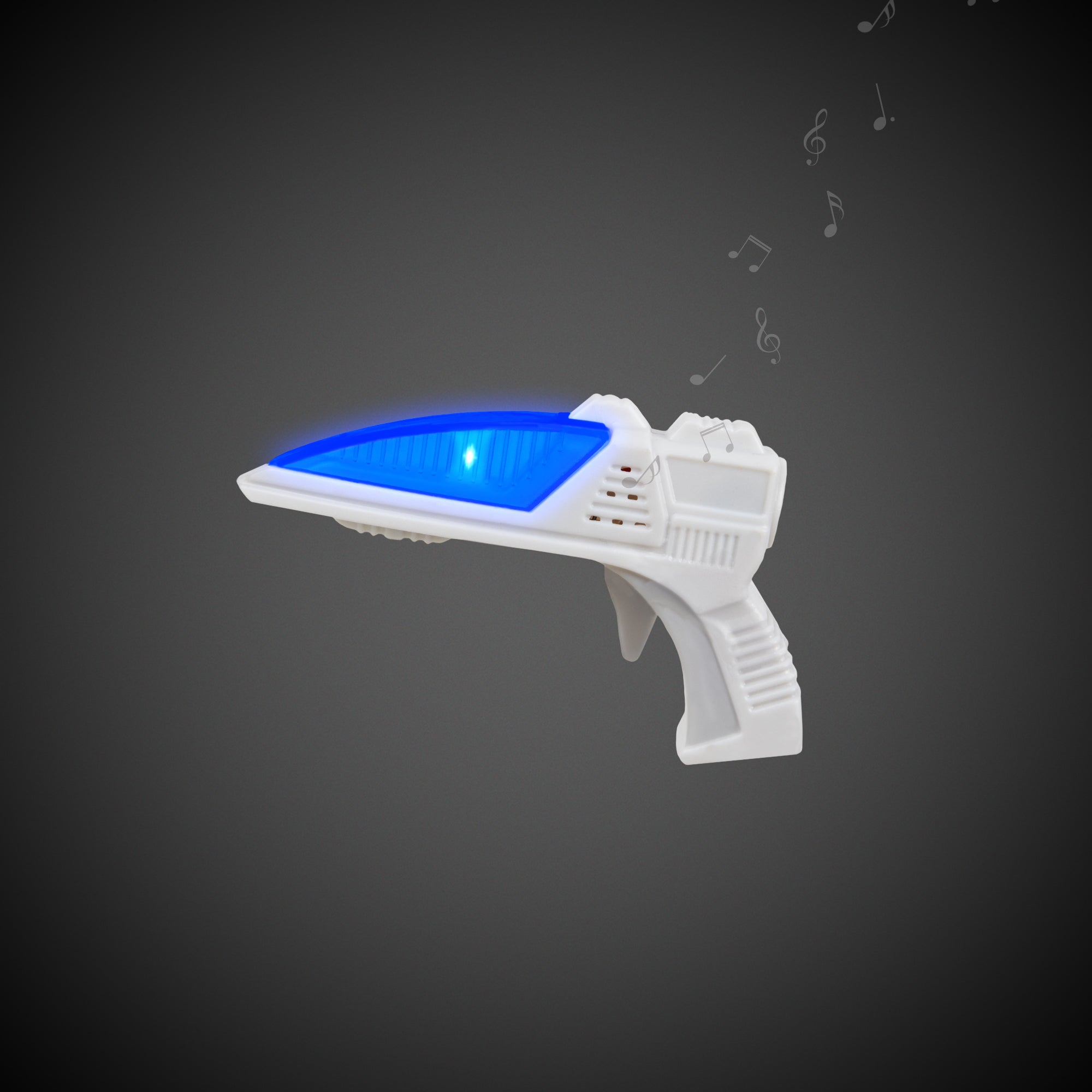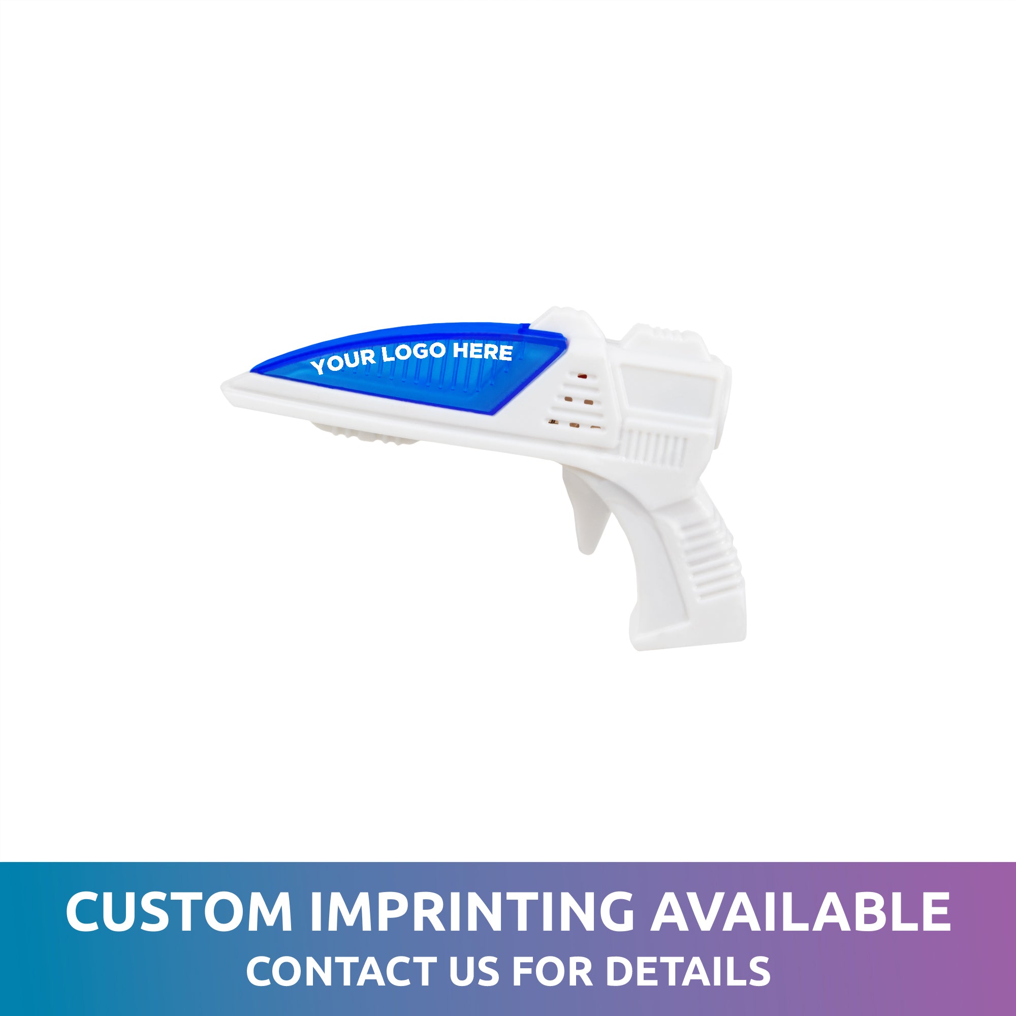 Be ready for the next alien invasion-or just an alien-inspired party with our Mini LED Toy Space Gun with Sound! This retro-inspired mini light-up space gun with sounds and lights is the perfect accessory for space-age costumes and makes a great party favor for alien and space theme parties. Press the trigger on your light-up toy space gun and watch the space-age sounds and flashing lights add an extra element of fun to any night! The mini light-up space gun has bright blue LEDs that flash with the pull of a trigger and are sure to delight sci-fi fans of all ages. Measuring 3 1/2", the light-up toy space gun is perfect for giveaways, redemption prizes, and party favors. Each Mini LED Toy Space Gun with Sound comes with batteries included & installed and is sold by the piece. SKU: WEA084EA