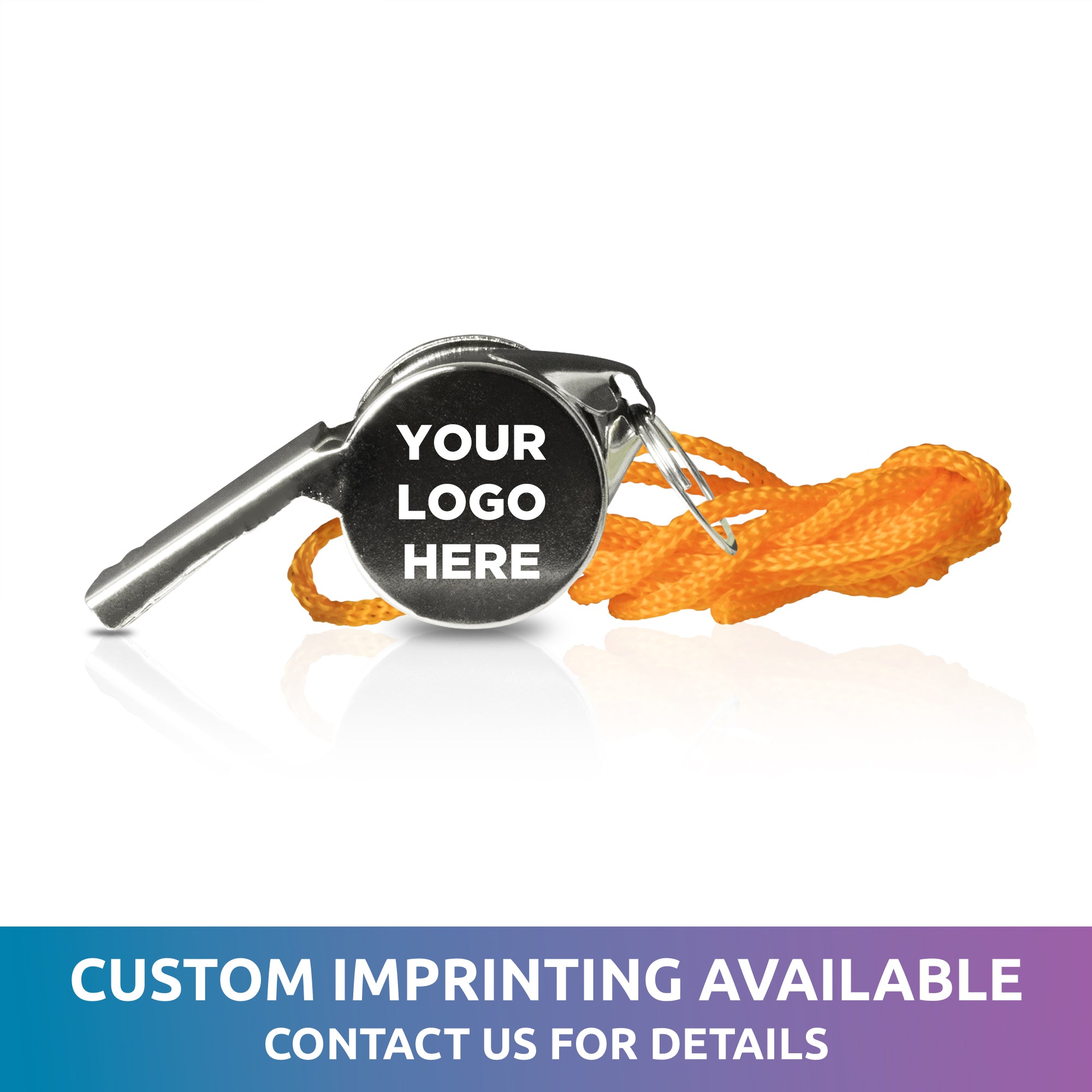 Get the game started with these authentic Referee Metal Whistles! Each 1 3/4" silver whistle delivers a sharp, attention-grabbing blast perfect for calling plays, starting races, or keeping order at your next big event. Complete with a bright orange lanyard for easy visibility and secure carrying, these classic metal whistles are ideal for sports tournaments, field days, team competitions, or themed parties. This convenient 12-pack ensures you'll have plenty to go around, whether you're outfitting referees, coaches, or party guests who want to join in on the fun. Please order in increments of 1 pack. SKU: MUS043DZ