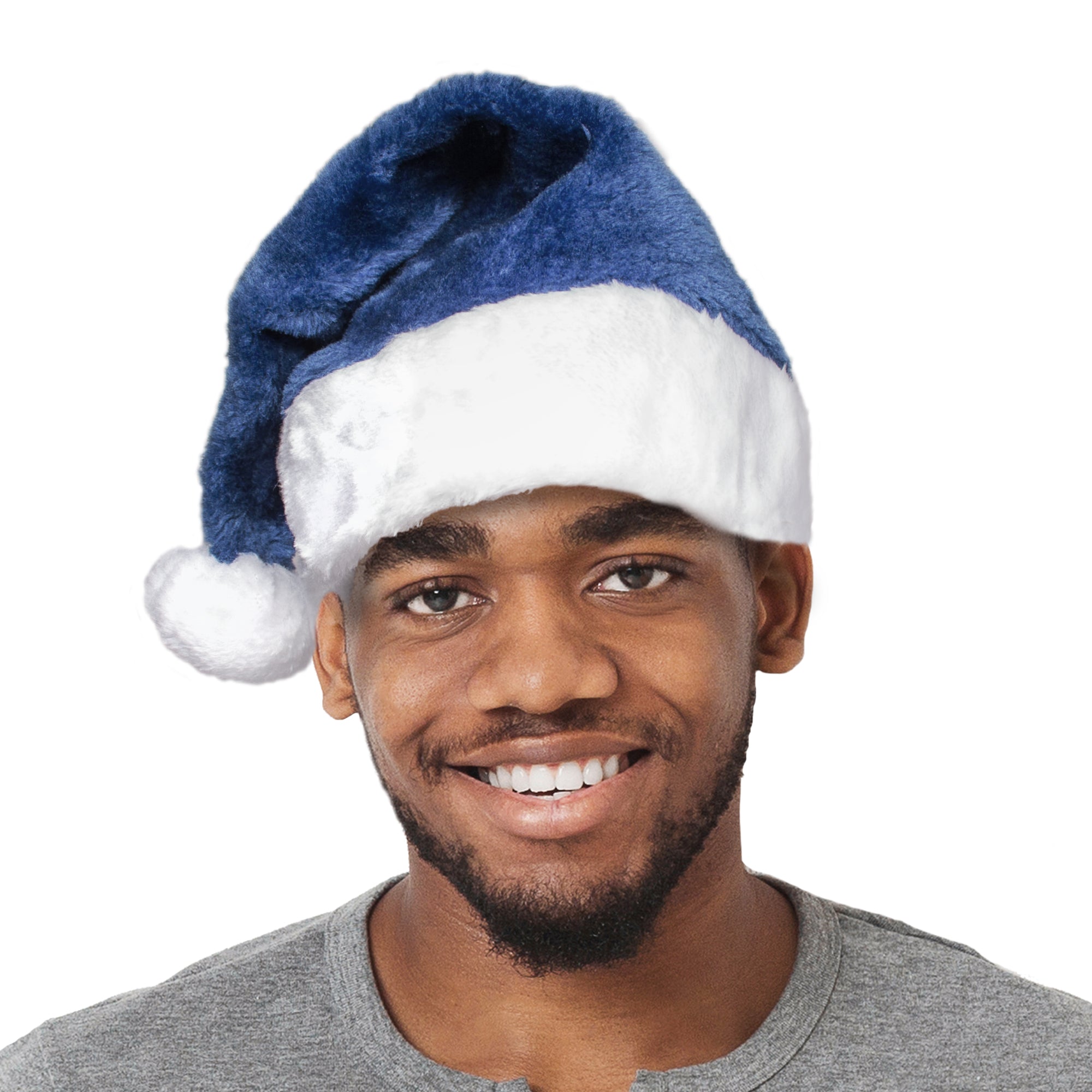 Stand out this Christmas with our Royal Blue Plush Santa Hat—a fresh take on holiday headwear. The sumptuous plush fabric in rich royal blue pairs beautifully with a soft white trim and bouncy pom-pom for maximum festive charm. Ideal for ugly sweater parties, Christmas gatherings, or anyone ready to rock Santa's signature style with a modern, playful twist. Sold by the individual hat. Please order in increments of 1 hat. SKU: HAT589EA